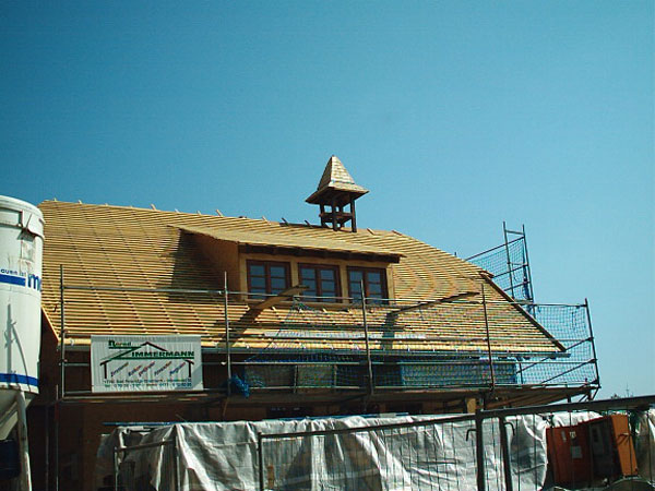 Die Zimmerei Bernd Zimmermann wurde dabei mit der Durchführung sämtlicher Holzarbeiten (Außen- u. Innenwände, Dach- sowie Schindelwände usw.) beauftragt. |
