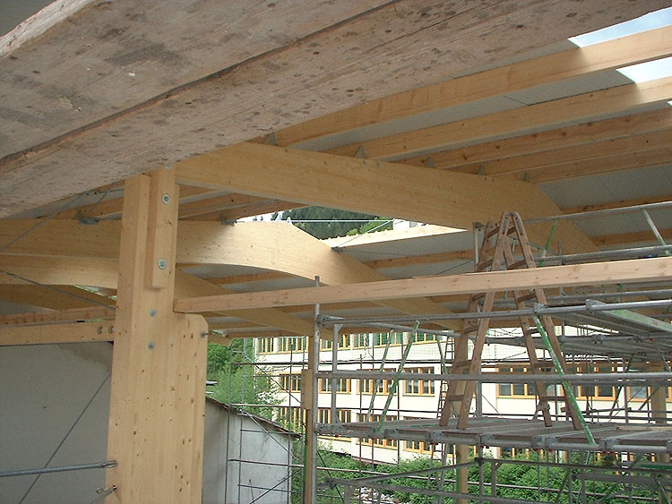Freitragende Elemente können mithilfe moderner Binderformen bzw. der Errichtung von Leimholzkonstruktionen problemlos hergestellt und montiert werden. Unser Blick gilt bei solchen Bauten auch der eindrucksvollen Werterhaltung des Holzes.